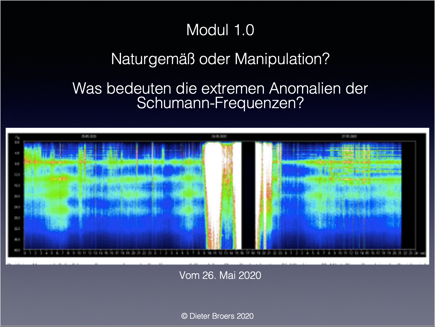 Der unmittelbar bevorstehende nächste Evolutionsschritt könnte durch eine entsprechende Beeinflussung der Zirbeldrüse oder der Schuhmann Frequenzen tatsächlich verhindert werden. Aus diesem Grunde ist es von besonderer Wichtigkeit, sich die Schumann-Frequenzen genauer anzuschauen. Im ersten Modul gehe ich der Frage nach, ob die immer wieder gemessenen Anomalien dieser Schuhmann Frequenzen, sich für uns hinderlich auswirken oder nicht. Oder wie bzw. ob wir diese Anomalien kompensieren können.